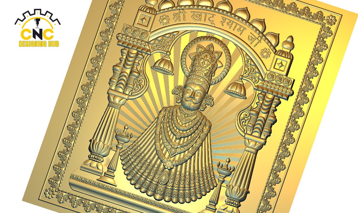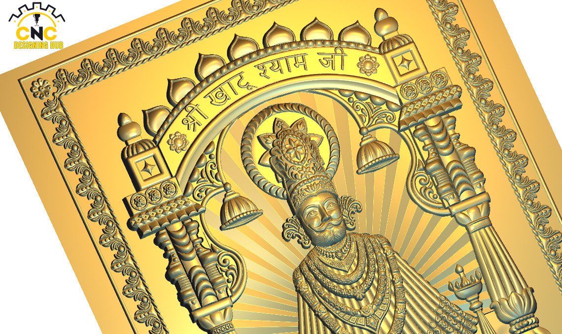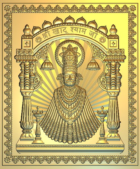 Khatu Shyam Ji Temple Frame – 3D CNC Relief Carving Design | Shyam Baba Wall Panel