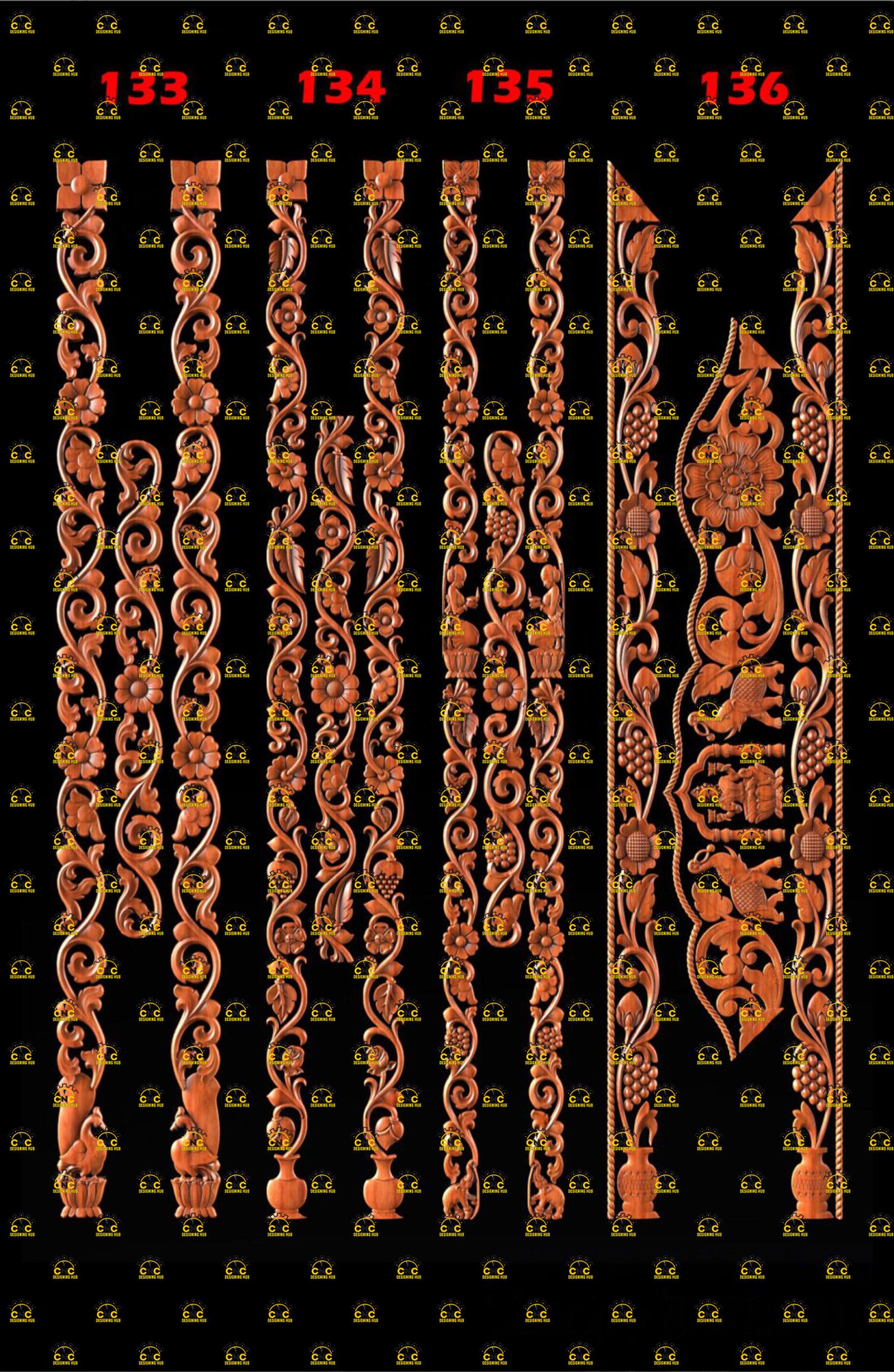 Premium CNC wooden carving designs collection, specially crafted for main doors, double doors, temple pillars, railing posts, staircase columns, and decorative architectural projects.